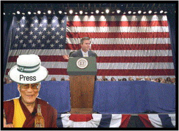 So, here's something many people don't know about me: I practice voodoo. I'm pretty good at it too. I could've gone pro if but I couldn't get a deal that would make my family secure if something should ever happen to me. Also, my projected spot in the draft was low third round at best, meaning I was good enough to go pro but not good enough to really make it big. Anyway, as the years went by and my time spent practicing voodoo went down significantly, I picked up another hobby which until now has been somewhat of a secret and that's time travel. I also found that these two hobbies can come in handy when used in combination. You see, I went on a date recently and the girl (who shall remain nameless) and I were enjoying a lovely and getting to know each other evening, talking about goals and hobbies and our careers and when I told her mine she replied, "So, when are you going to get a big boy job?" That was the end of that date, but the whole thing had cost me fifty bucks, so I wanted payback. That night I cursed her and went to bed, giving the curse time to settle in. The next morning I got in my time machine (I have a hybrid—environ-mental friendly!!) and traveled to the year 2009 to see how the curse had turned out and if I needed to make any alterations and whatnot. As I was waiting around where I picked her up, I picked up the daily newspaper and this is what I found: The return of the Jeb-I By The Dali Lama. 1/20/09 (AP) WASHINGTON -- To hell with it. Seriously. No, you know what? Fuck it (can I say that? At this point, who cares?!)! At least Michael had the courtesy to whack Fredo when he couldn't cut the mustard; why couldn't W. have had the some foresight because now it's too late? The inauguration is moments away and so far Tupelo, Mississippi and an unidentified part of 'Bama have been all but blown off the map by a new wave of dirty bombers. After three years of peace brought on by W. after the fall of the Middle East (followed by the greatest Harvest Crusade of all-time) the intellectualists have finally started to make their voices heard and are targeting the strongholds of the Bush III campaign: the deep South. Bush has decreed that the moment he takes office he'll launch a full-scale war on the liberal intellectuals of the greater U.S.A., Canada, and Europe, in that order. So I say screw it, I'm going to McDonald's to try one of the those nasty number 4's, I'm buying an S.U.V., I'm five chapters into my new James Patterson book, I'm stopping at Starbucks for a latte, and then dropping by Blockbuster to get the new Ben Affleck movie: Gigli 3D, a brand new ass. What's the point? Hell, I'll probably go buy the greatest hits of Michael Bolton while I'm at it. Buddhism can go to hell. I tried and tried but no one would listen. Maybe I'm the one who's nuts. I spent years walking around in a Goddamned robe and this is what we get in the Western World? I was so close to finally building a bridge with this side of the planet. It was to be my Chevy coup d'grace, if you will... or was it Chevy Chase? But now this whole lifetime was wasted in that one moment where Jeb asked his secret service man, "who let the homeless Chinaman in? Is this a photo op? I pass." So now I shop at the Gap and I'm getting a tattoo of the American eagle on my forearm. If you can't beat 'em, join 'em. Here I am, the Dali Lama, standing on the lawn of the White House, an anonymous reporter talking into my recorder, preparing to see this man accept the reign of a country I've come to love and respect. I hope the Scotch starts to kick in soon. I hear all writers should like Scotch. I drank enough today to make it to November. I'm starting to feel like I'm in a Lewis Carroll novel... no, he's not from MTV you worthless piece of shit (Note: I was interrupted by a slouched over 'anchor' from MTV 6, who thought I was talking about some DJ from Germany). Wait a second, that must be the Scotch kicking in. I like this. This might work out. A monk could get used to this, couldn't he? Yeah he could. We might get through this thing after all. At least as long I don't run out of...what's this called.... oh, they call it 'Dewar's White Label.' Anyway, I hope this doesn't run on too long, Mandela and I are meeting up at this place called a titty bar; his idea. Here he comes, the apocalypse speaks in five... four... three... two... one... I was stunned to say the least. In fact, I didn't even notice the girl until she pulled out of her driveway and headed off down the street in her brand new BMW. I guess my cursing skills need some work, but thankfully my time traveling skills aren't as rusty. Good thing too, from the looks of this article. At first I thought I shouldn't do anything but then I remembered how I came across the article in the first place, so all bets are off. I'm writing this as I travel back to 2005, knowing that I've got some voodoo practice to get to. After all, voting's one thing, but a curse is a sure bet.